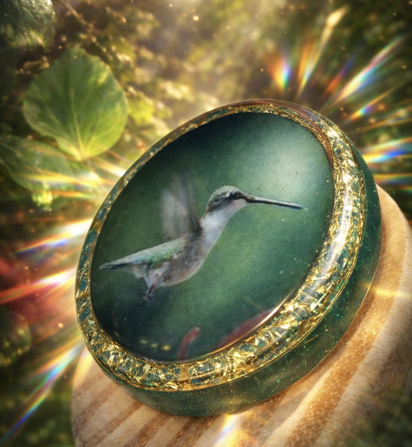 Orgonite Redondo Arquétipo Beija-Flor – Cura do Coração e Leveza Emocional